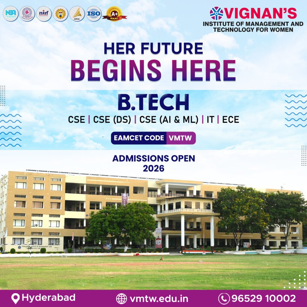 VIGNAN’S Institute of Management and Technology for Women is committed to shaping empowered women leaders. As an autonomous institution affiliated to JNTUH and approved by AICTE, we blend academic excellence with innovation, leadership, and holistic development—preparing students to thrive in a fast-evolving world.