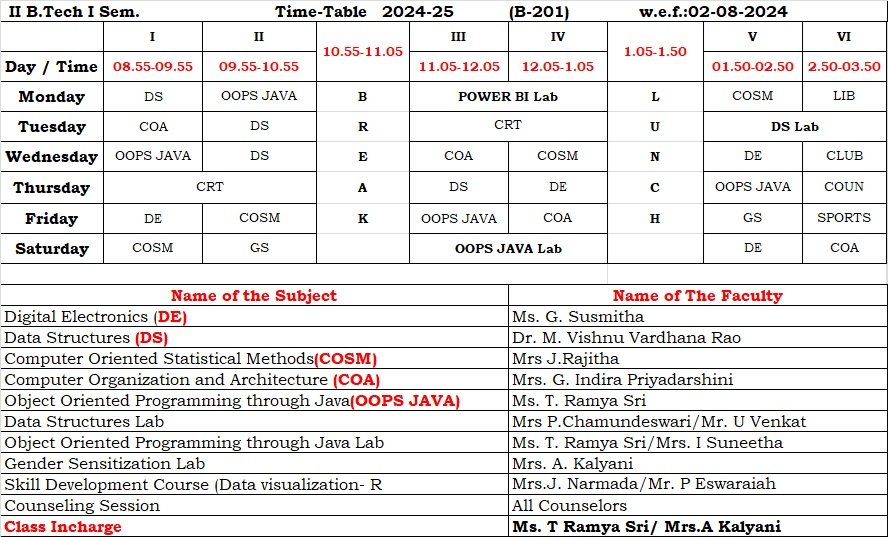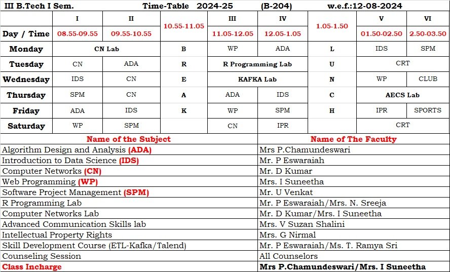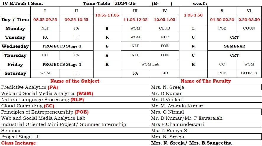 Home » COMPUTER SCIENCE AND ENGINEERING (DATA SCIENCE) » Time Table